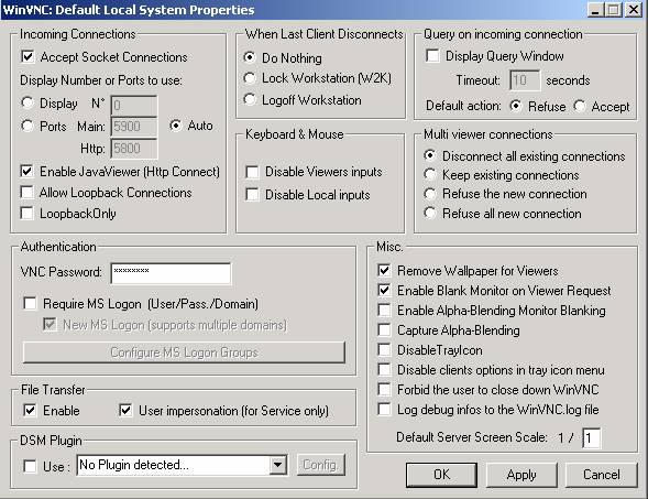 A tálcán automatikusan megjelenik egy kis ikon VNC jellel. Jobb egérgombbal rákattintás után kinyílik egy panel melyben (Properties) a beállításokat megtalálja, és új kliensekkel tud kapcsolatot felvenni.